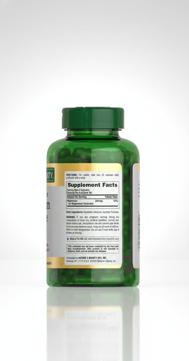 - Relajación Profunda: El Glicinato de Magnesio ayuda a relajar los músculos y calmar la mente.